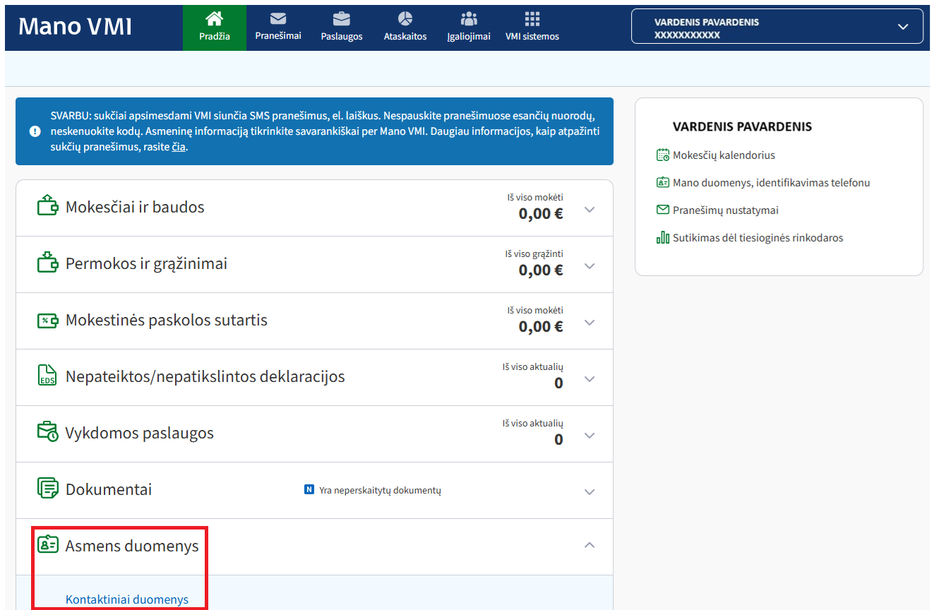 Kaip Mano VMI galima pakeisti/nurodyti mano kontaktinę informaciją (adresą korespondencijai gauti)?