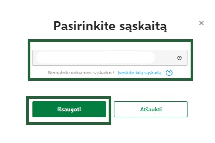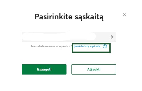- paspauskite prie pateiktos sąskaitos numerio Keisti;