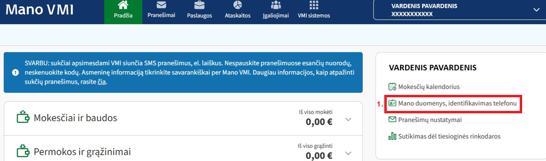 Jeigu gyventojas nėra Mano VMI sistemos naudotojas, t. y. niekada nebuvo prisijungęs prie Mano VMI, tokiu atveju, pranešimai papildomai siunčiami ir paštu (per pašto paslaugų teikėjus) mokesčių mokėtojo deklaruotos gyvenamosios vietos adresu arba adresu korespondencijai gauti (jeigu toks nurodytas Mano VMI sistemoje).