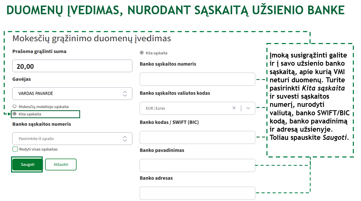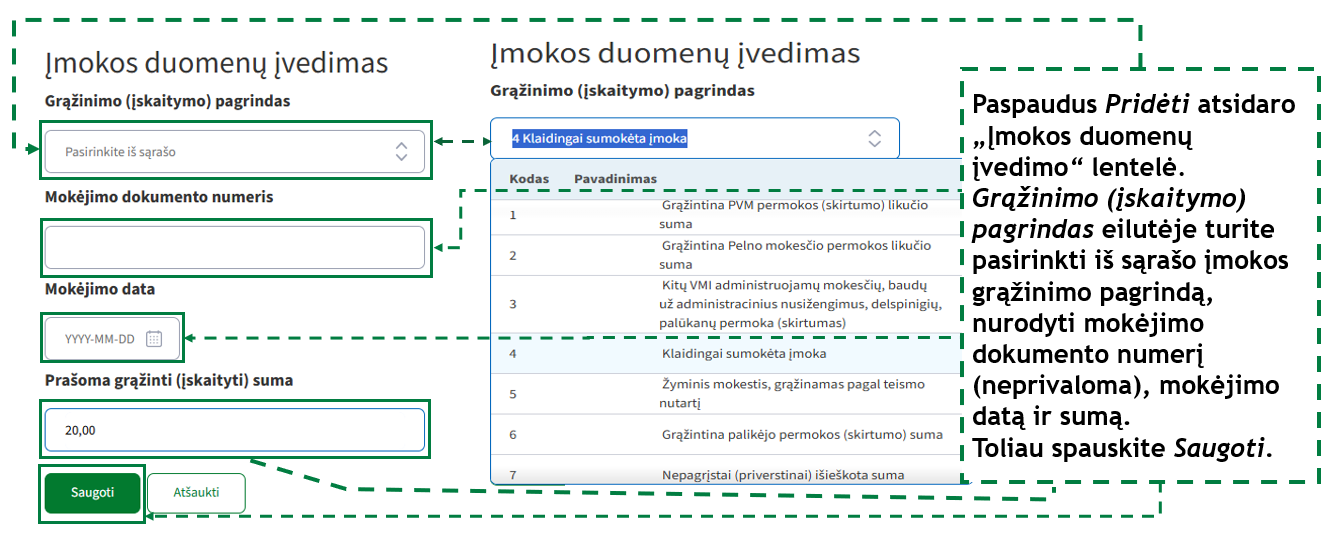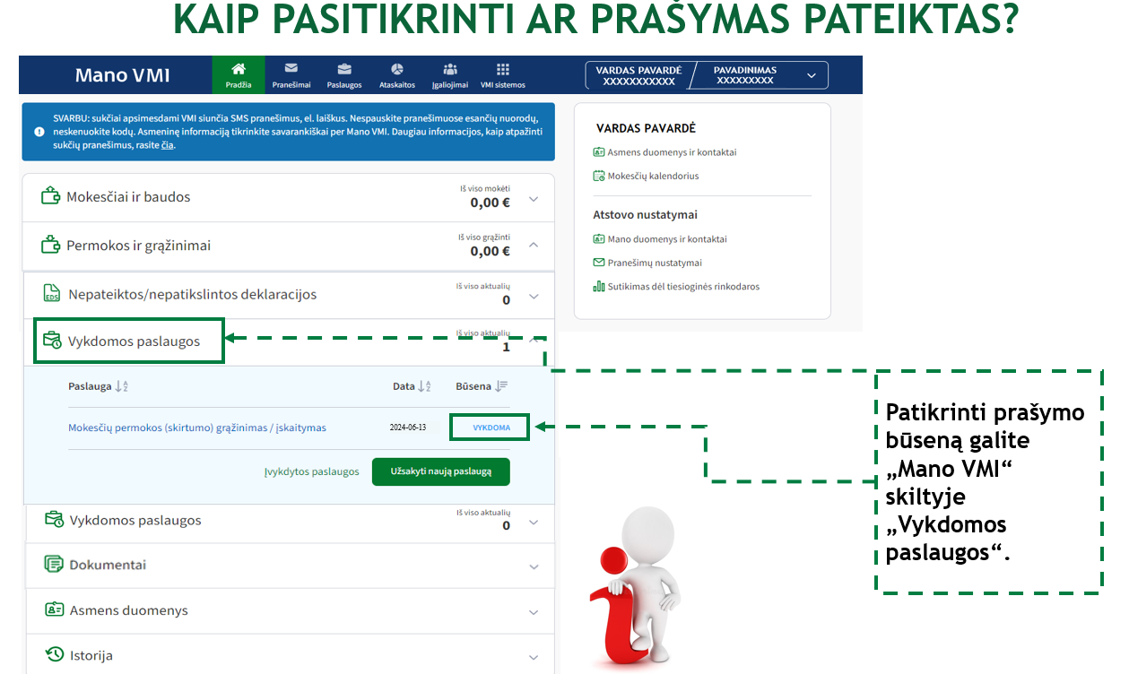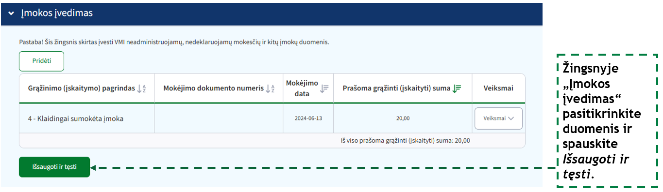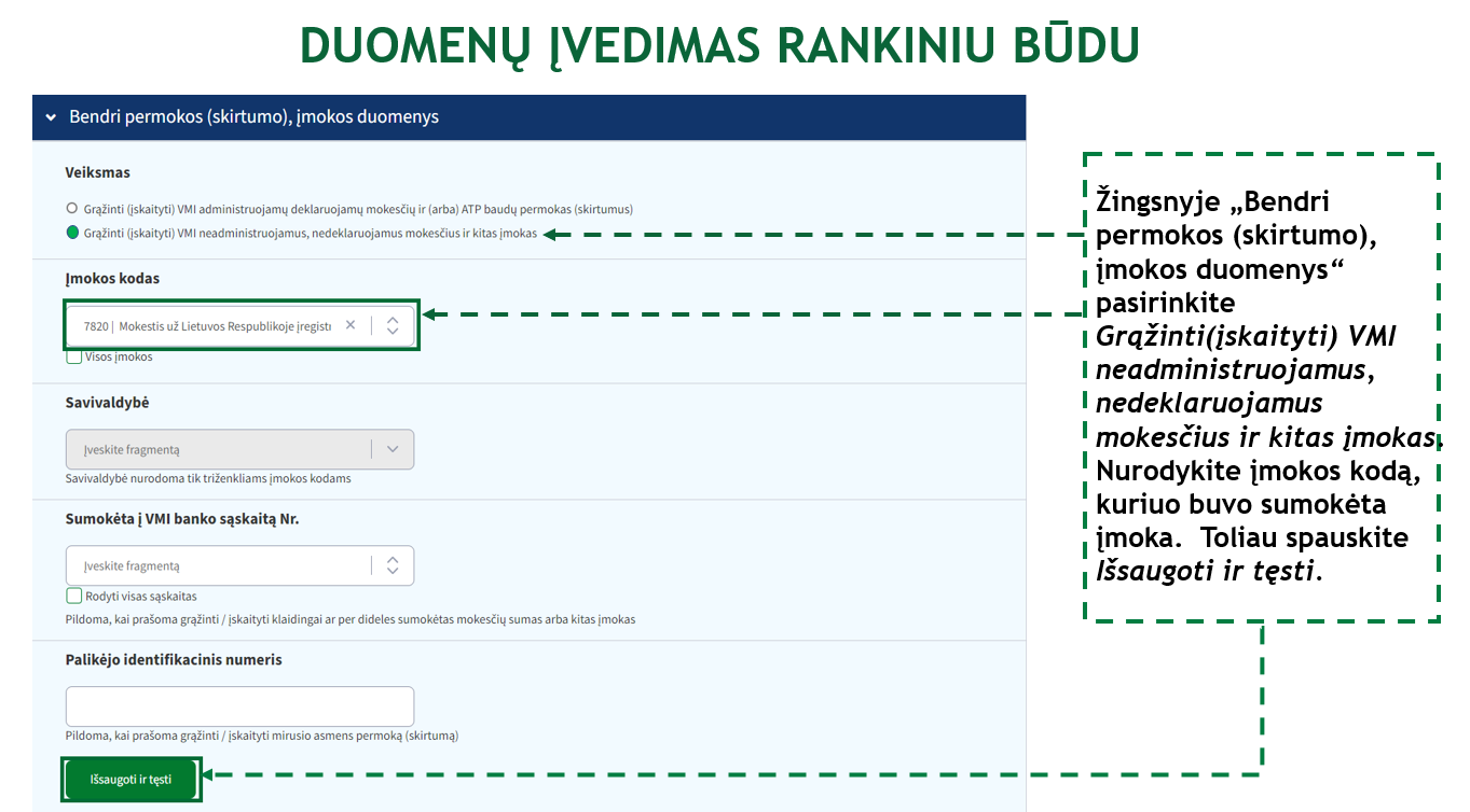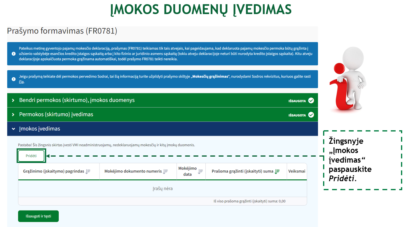 Prašymo FR0781 pateikimas norint susigrąžinti VMI neadministruojamą įmoką (rinkliavą) arba jos dalį per Mano VMI