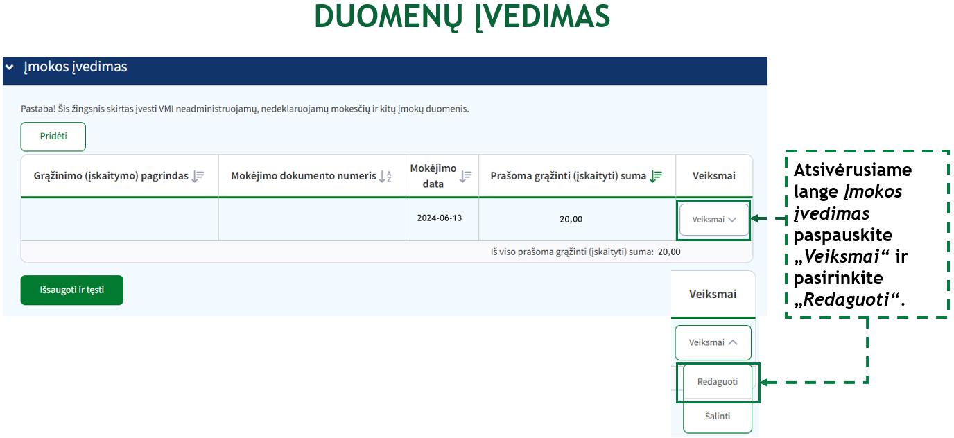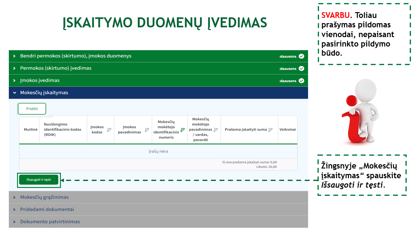 VMI pagal pateiktus trečiųjų šaltinių (darbdavių, kredito įstaigų, užsienio valstybių mokesčių administratorių), įskaitant ir platformas, duomenis suformuoja gyventojams pažymas apie jų per mokestinį laikotarpį gautas pajamas ir patirtas išlaidas bei preliminariąsias Deklaracijas. Pažymoje ir (ar) preliminarioje Deklaracijoje pateikti duomenys nėra galutiniai. Todėl preliminarios Deklaracijos duomenis gyventojas pats turi įvertinti, papildyti ir pakoreguoti, jei turi kitų ir / ar tikslesnių, nei pažymoje / Deklaracijoje nurodytų duomenų.