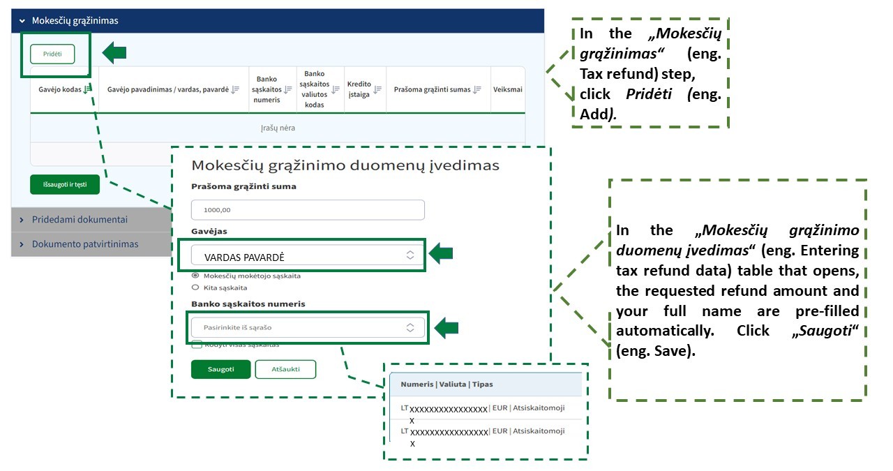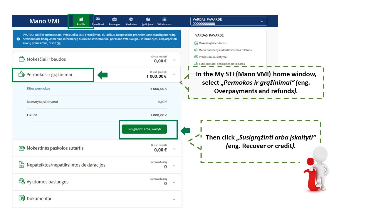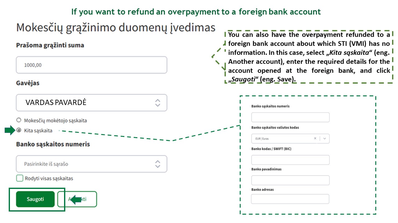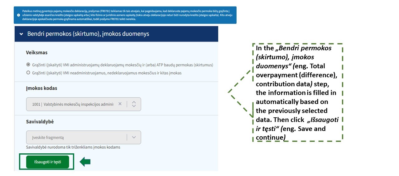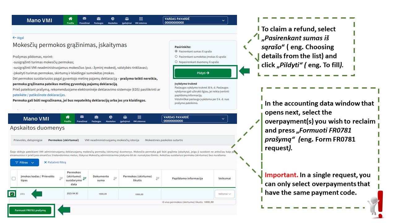 Prašymo susigrąžinti mokesčio permoką į savo banko sąskaitą pateikimas per Mano VMI (FR0781) (EN)