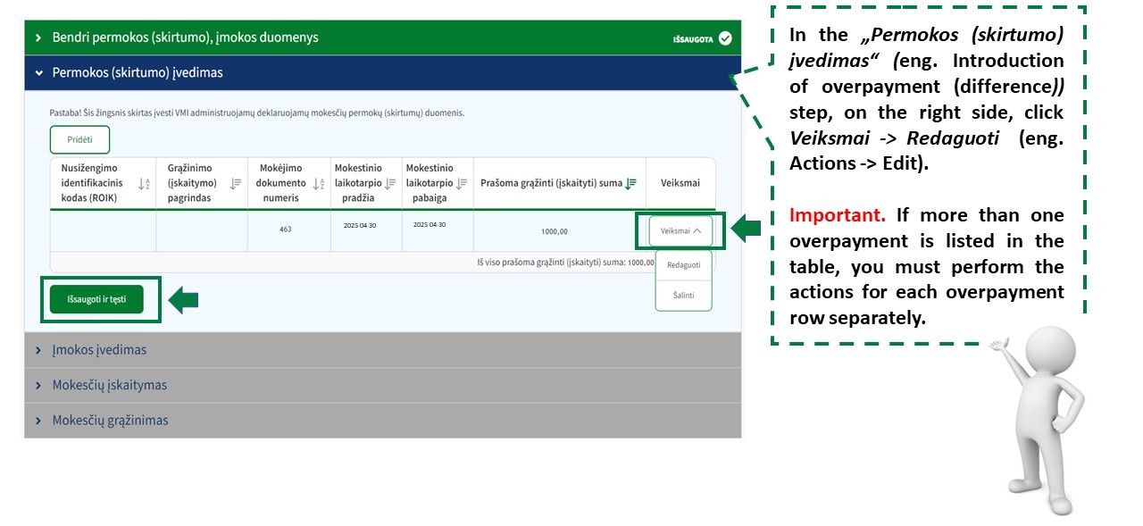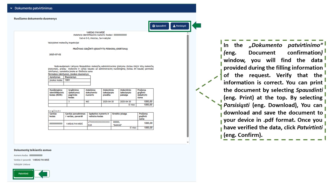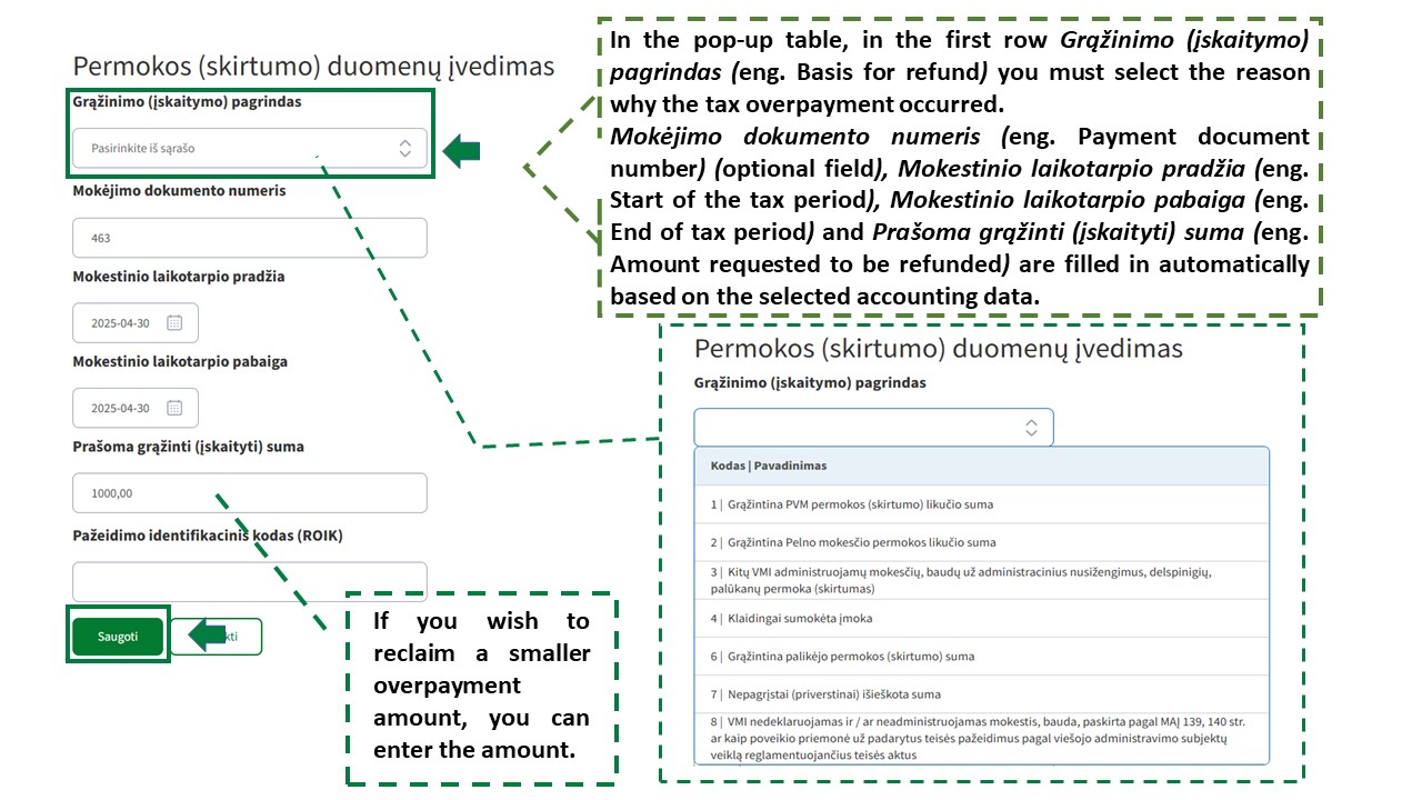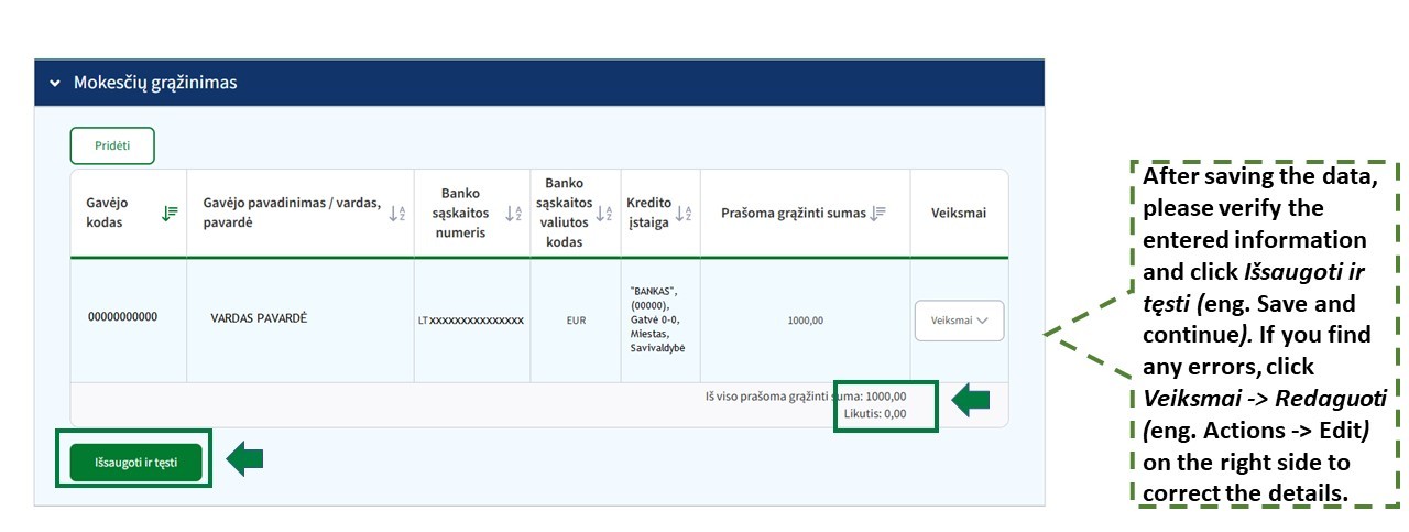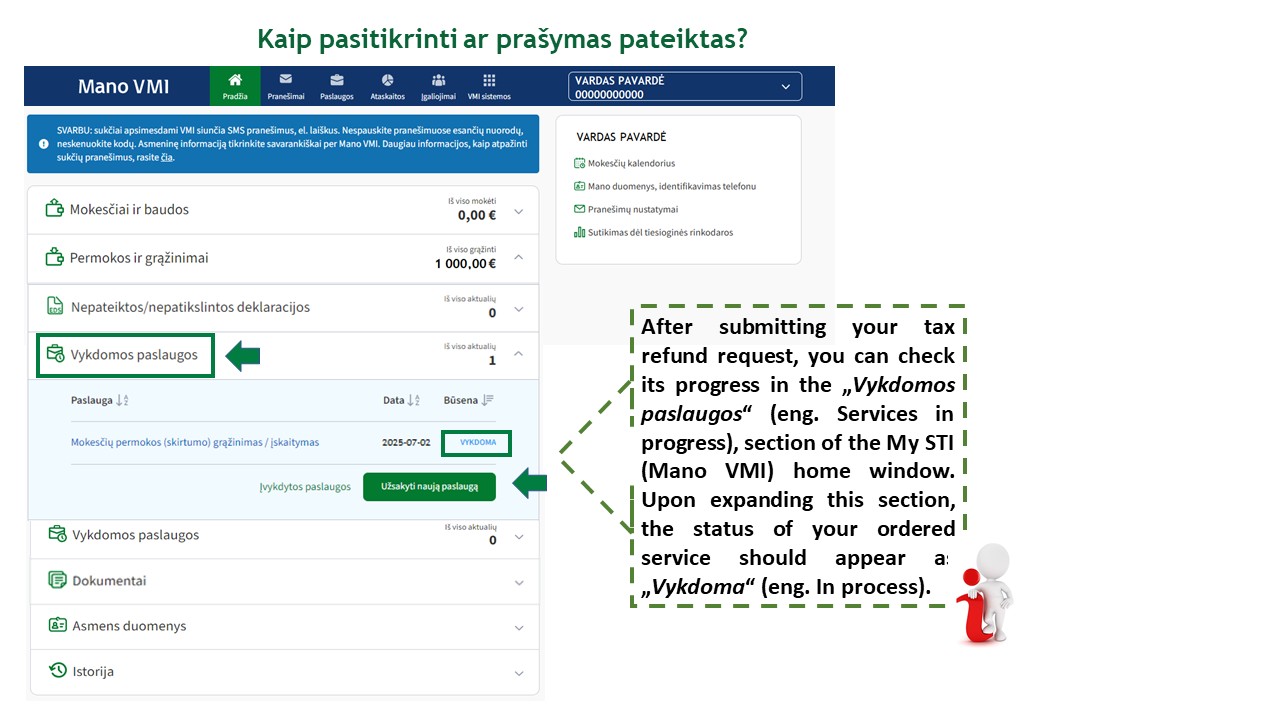 Prašymo susigrąžinti mokesčio permoką į savo banko sąskaitą pateikimas per Mano VMI (FR0781) (EN)