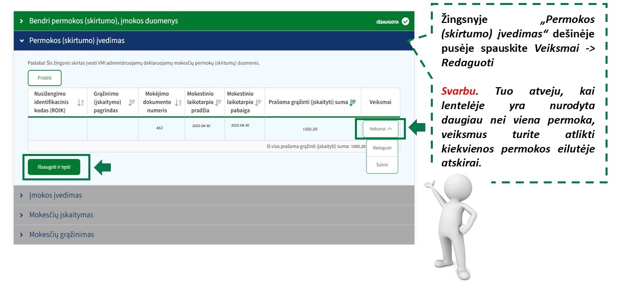 Tokiu atveju MM, kuris klaidingai sumokėjo mokestį ar kitą įmoką, privalo pateikti Prašymą dėl klaidingai sumokėtos įmokos įskaitymo kito asmens mokėjimo prievolei padengti.
