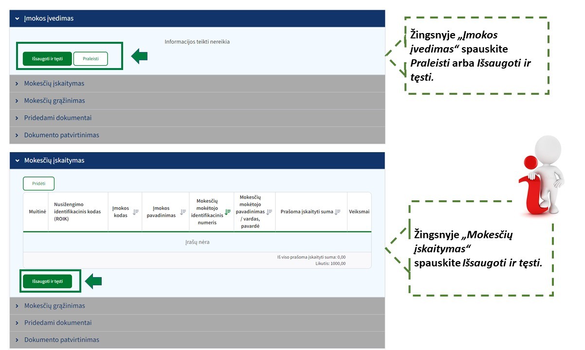- mokestį išskaičiuojančio asmens iš MM išskaičiuota ir sumokėta per didelė pajamų mokesčio suma arba klaidingai išskaičiuotas ir sumokėtas pajamų mokestis įskaitomas to MM nepriemokoms padengti ar mokesčiams, kurių mokėjimo terminas nepasibaigęs, įskaityti.