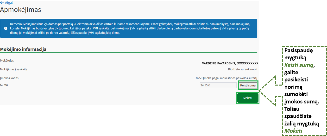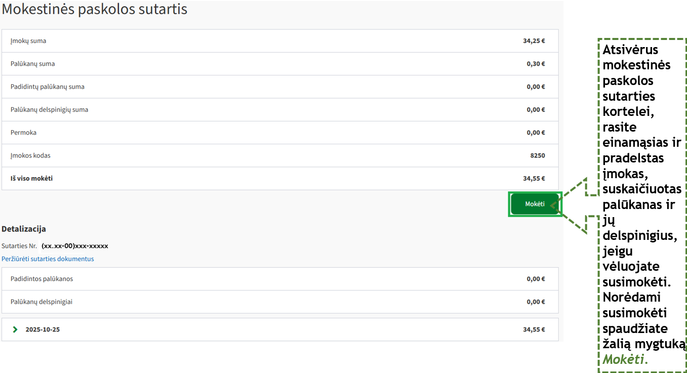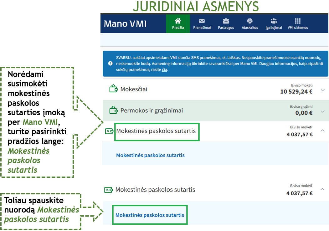 Kaip pasitikrinti ir susimokėti įmokas pagal mokestinės paskolos sutartį per Mano VMI?